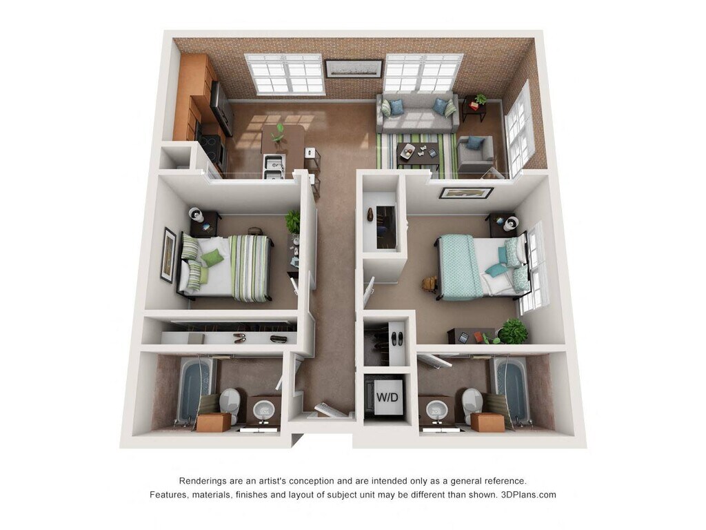 Apartment Model: 2 Bed 3 Bath F$3,1462 Bedroom, 3 Bath, 1159 sq ftUnavailable![]()