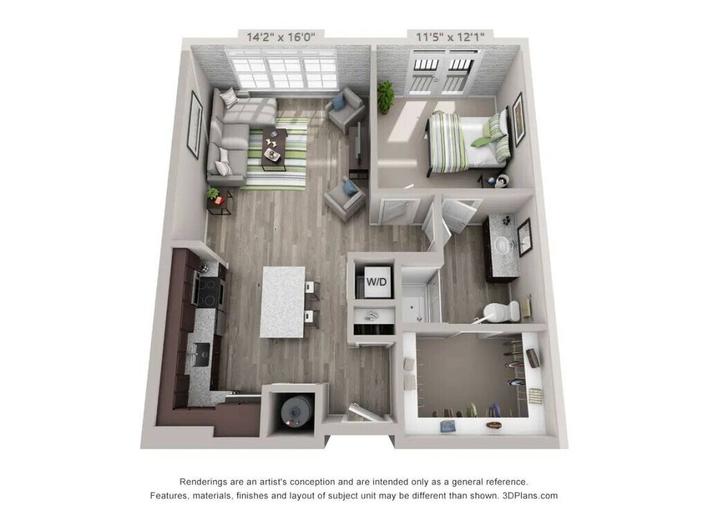 1 Bed 1 Bath A - Floorplan 3 1 Bed 1 Bath C