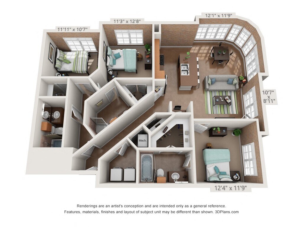 Apartment Model: 3 Bed 3 Bath B$3,4353 Bedroom, 3 Bath, 1363 sq ftUnavailable![]()