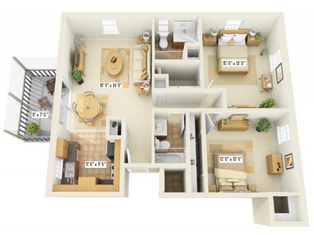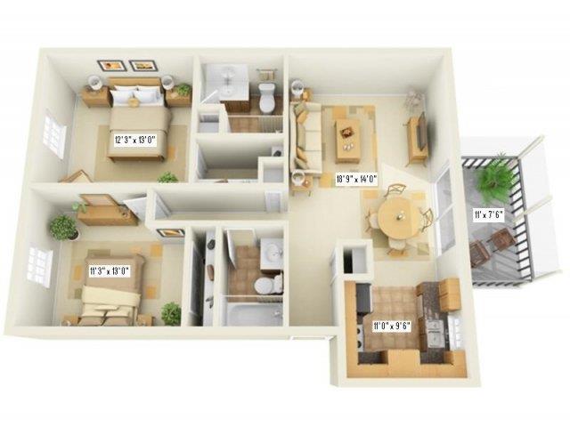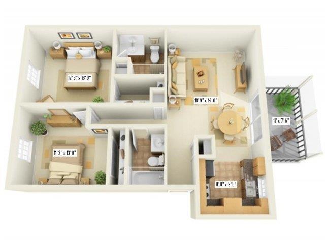 Apartment Model: B3RCall For Rates2 Bedroom, 2 Bath, 1039 sq ftUnavailable![]()