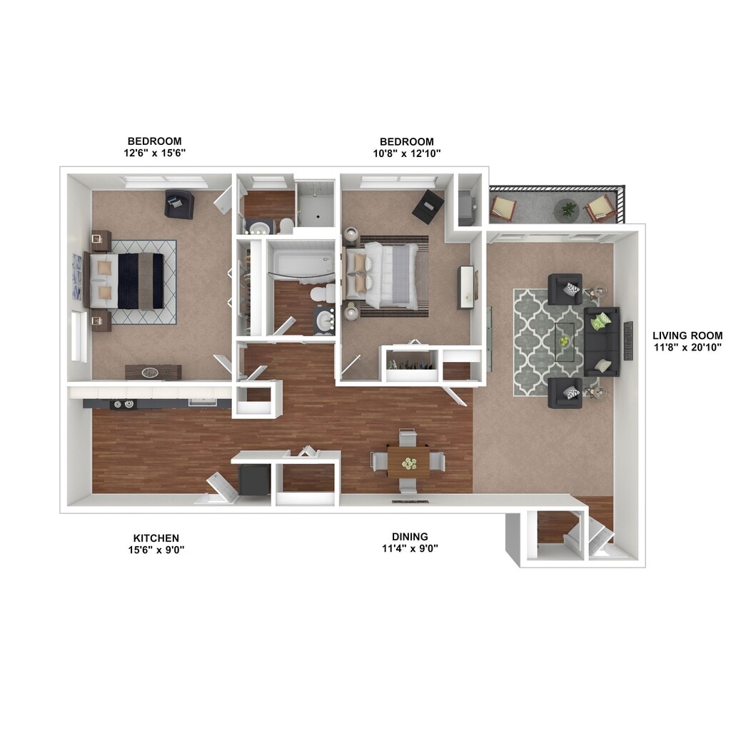 2 Beds, 2 Baths, 1187 sq ftAvailable NowLargest 2 BedroomThis is the largest 2 Bedroom at this PropertyModel Gallery