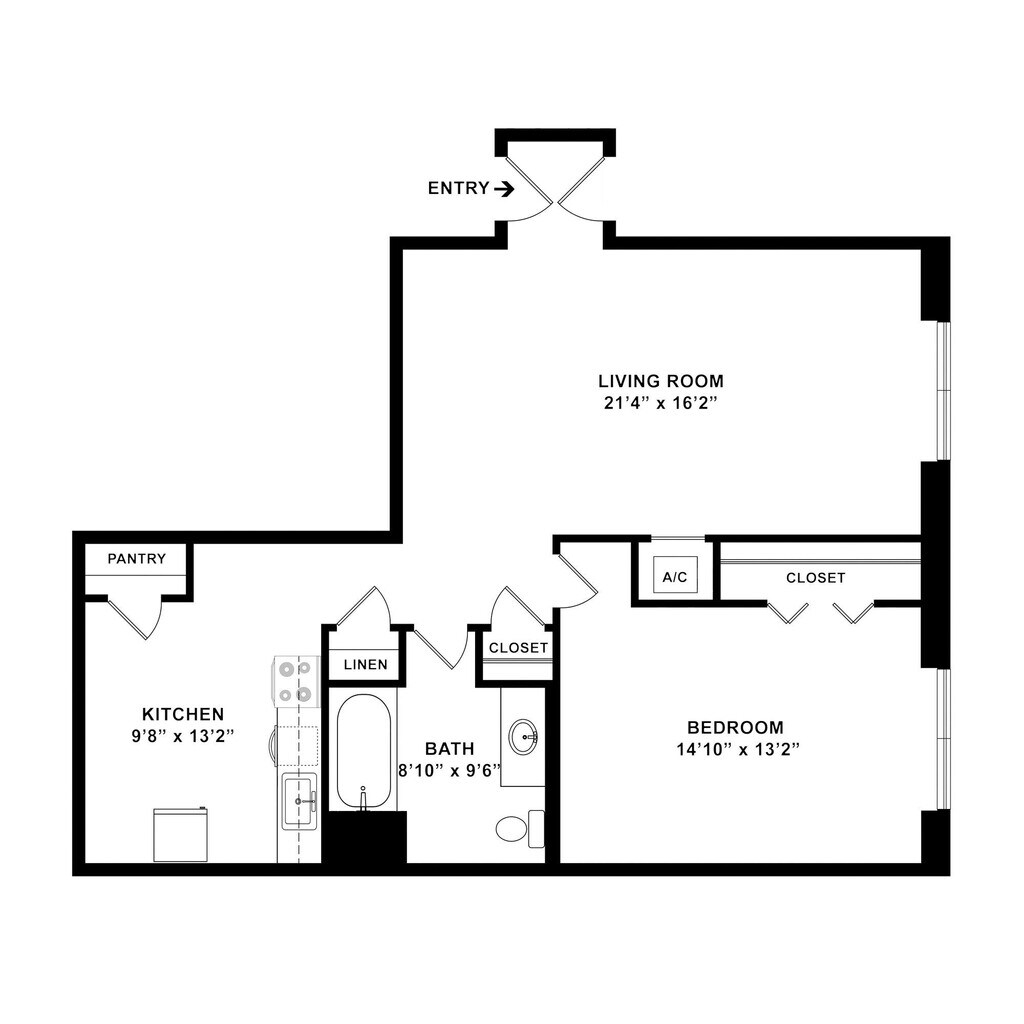 B1R - 1 Bed 1 Bath Renovated - Floorplan 2 ![]()
