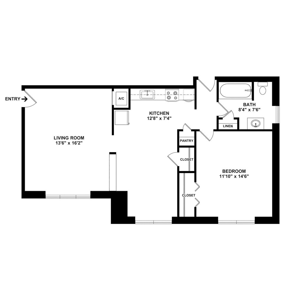 B1R - 1 Bed 1 Bath Renovated - Floorplan 1 ![]()