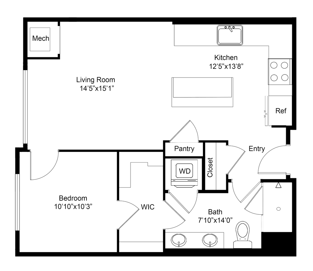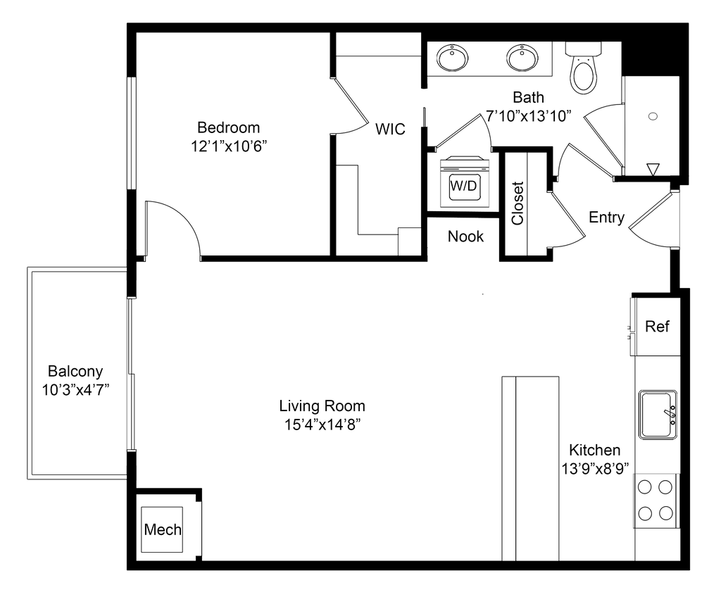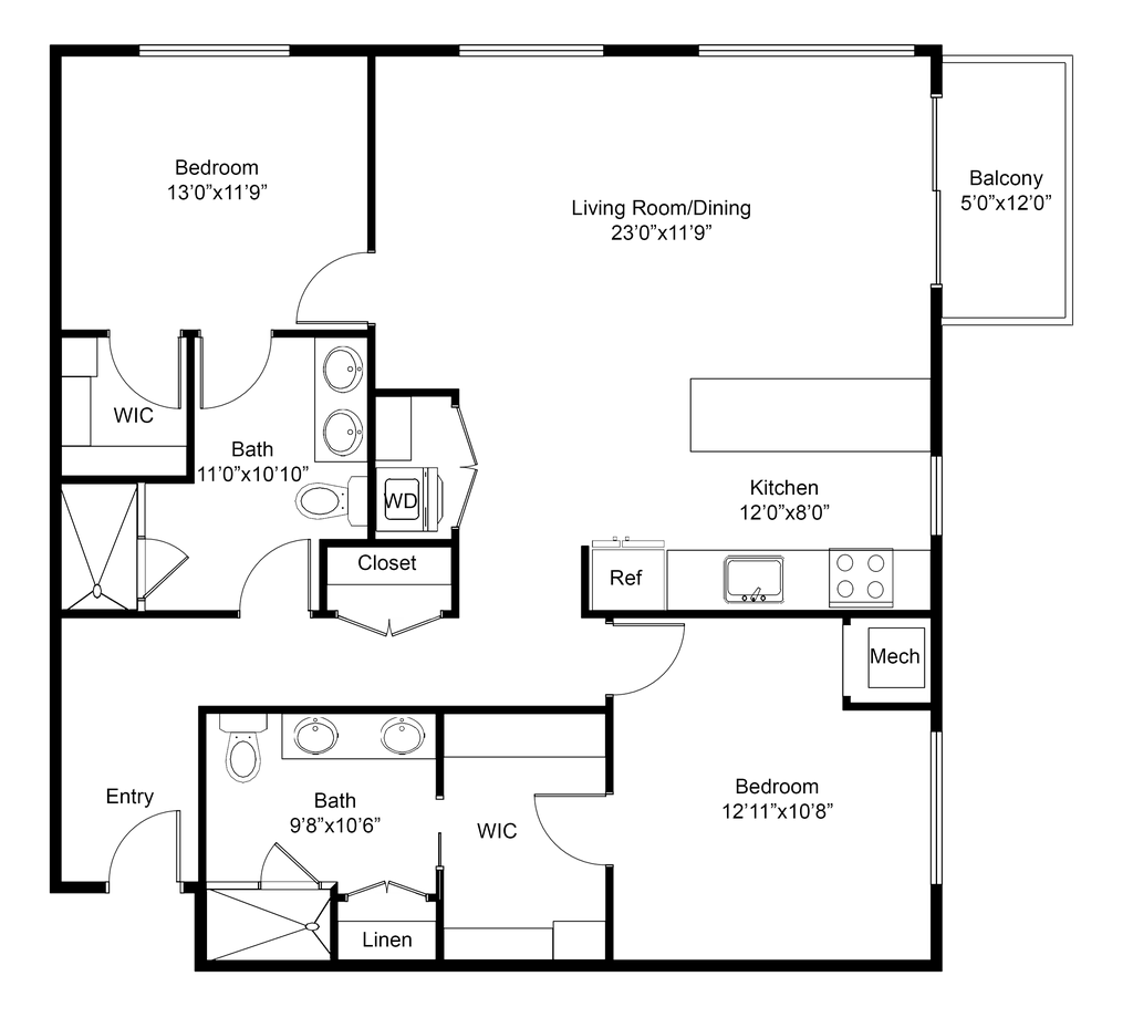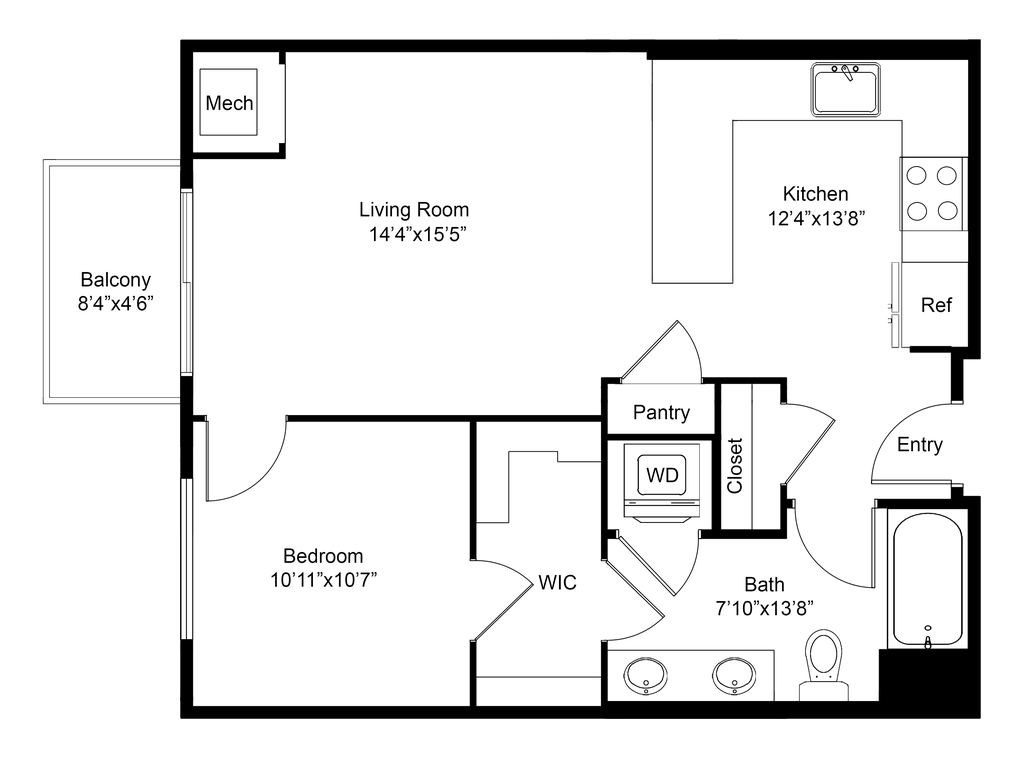 1 Bed, 1 Bath, 814 sq ftPlus FeesAvailable NowLargest 1 BedroomThis is the largest 1 Bedroom at this PropertyModel Gallery