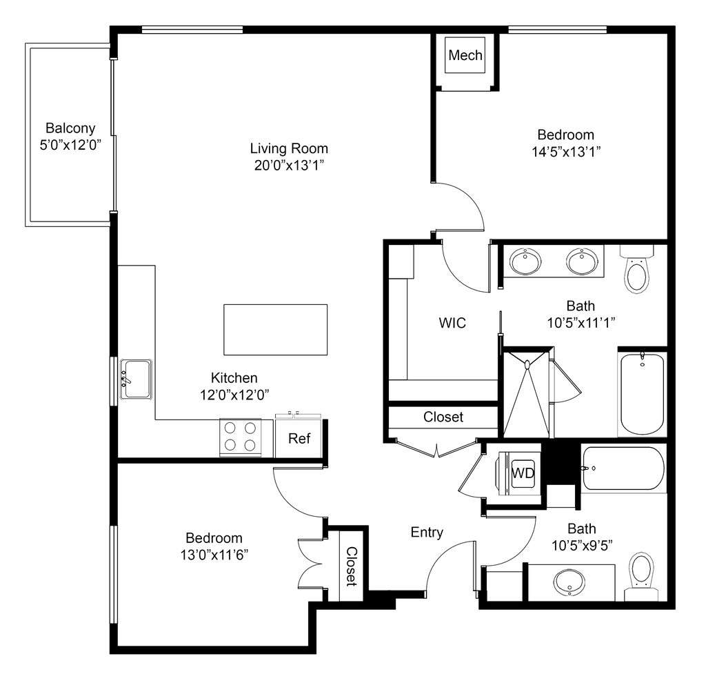1 Bed, 1 Bath, 725 sq ftAvailable NowModel Gallery
