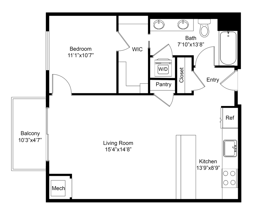 1 Bed, 1 Bath, 725 sq ftPlus FeesAvailable NowModel Gallery