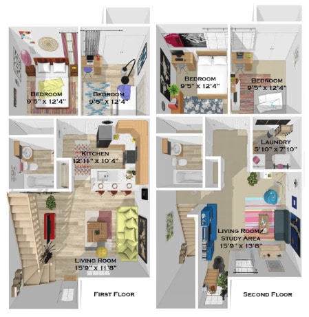 The Fox Townhomes offers 4 Bedroom apartments starting from $629 and having 1,175 sq ft. Here is the current pricing and availability: