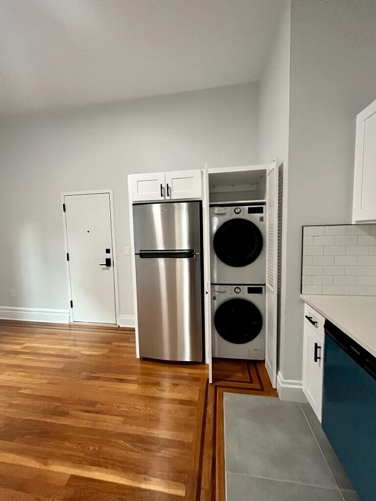 Newly renovated 1-bedroom apartment available in the heart of downtown Nutley. Features a luxury kitchen with quartz countertops, modern cabinets, stylish tiled backsplash, full suite of stainless steel appliances which includes the fridge, range, dishwasher, and microwave. Full size washer and dryer in unit. Large windows, LED lighting, and subway tiled bathroom with black matte fixtures. Beautifully restored original hardwood floors throughout the apartment. Franklin Lofts is in a fantastic location in downtown Nutley. All of life's conveniences are a short walk away from Franklin Lofts, including many great restaurants and shops, grocery stores, and public transit that allow for quick trips to NYC. This community also offers the most current controlled access in the lobby with ButterflyMX, allowing for smart and easy access for all residents and guests. Street parking or Municipal parking lot located within walking distance. *No Broker Fee* Heat is included. Pet Friendly with breed restrictions. Verifiable income and credit required.