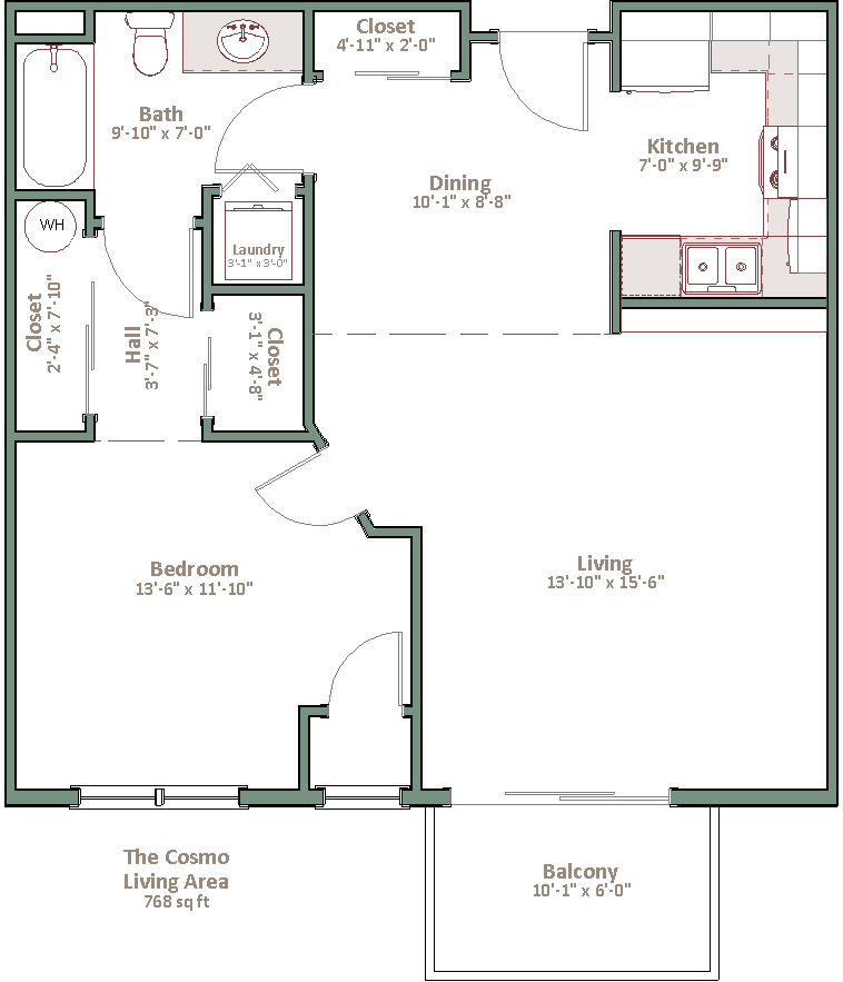 1 Bed, 1 Bath, 768 sq ftAvailable NowModel Gallery
