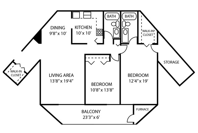 2 Beds, 2 Baths, 1268 sq ftAvailable NowLargest 2 BedroomThis is the largest 2 Bedroom at this PropertyModel Gallery