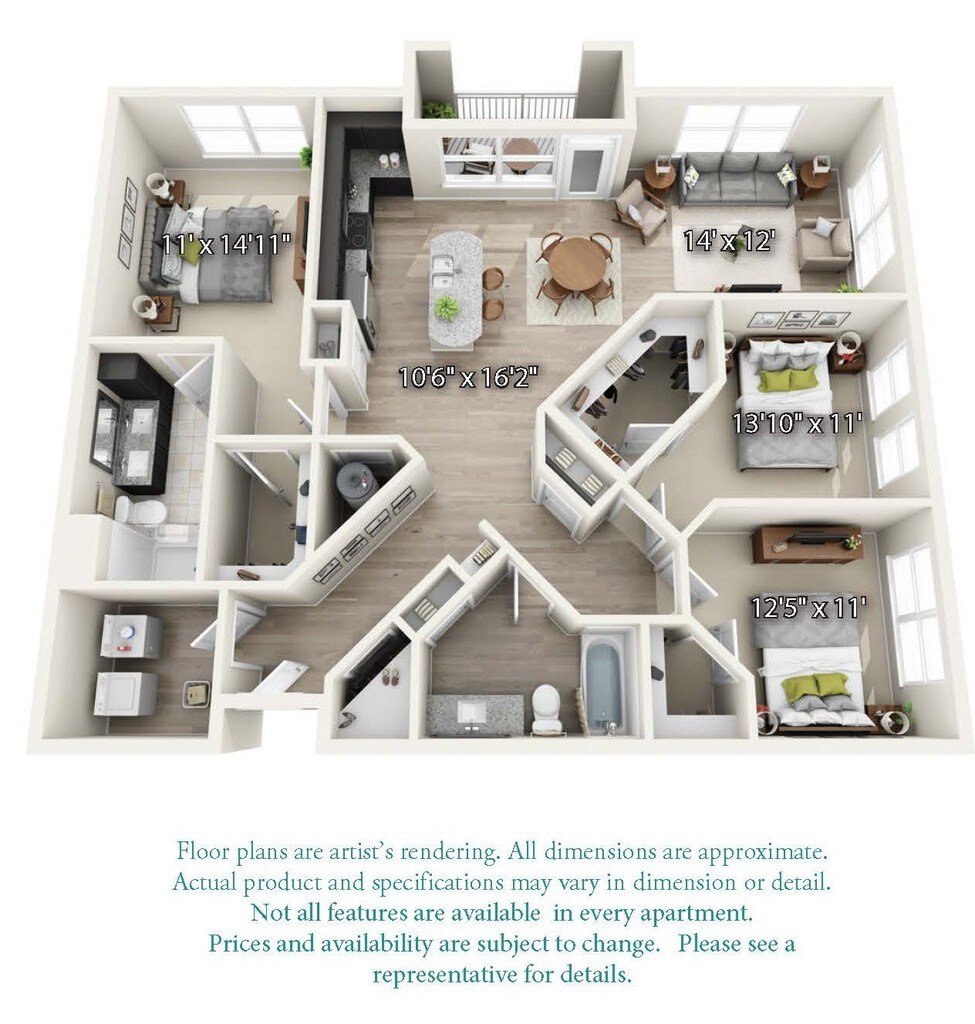 A4 - Floorplan 1 Floor plans are artist's rendering. All dimensions are approximate. Actual product and specifications may vary in dimension or detail. Not all features are available in every rental home. Prices and availability are subject to change. Base rent is based on monthly frequency. Additional fees may apply, such as but not limited to package delivery, trash, water, amenities, etc. Deposits vary. Please see a representative for details.