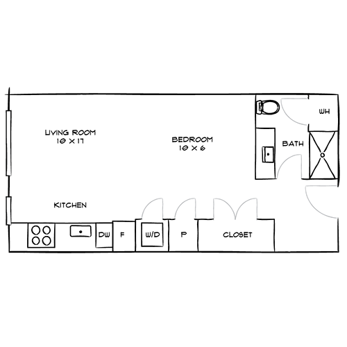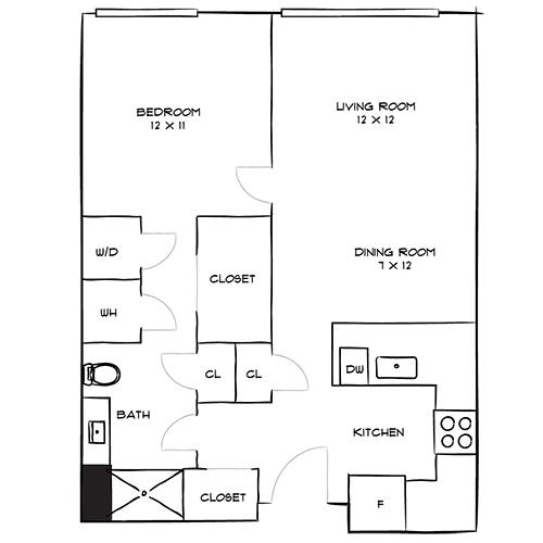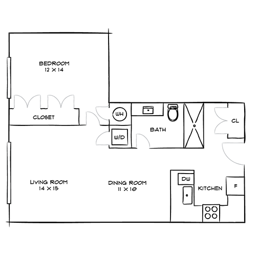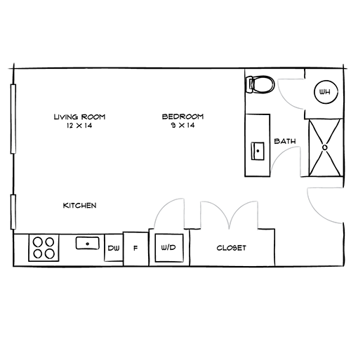 Frontier ED Jr. 1-Bed - Floorplan 1 1 Bedroom