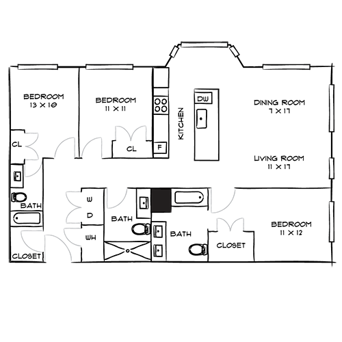 Apartment Model: Frontier 3A30$3,0493 Bedroom, 3 Bath, 1401 sq ftAvailable Now![]()