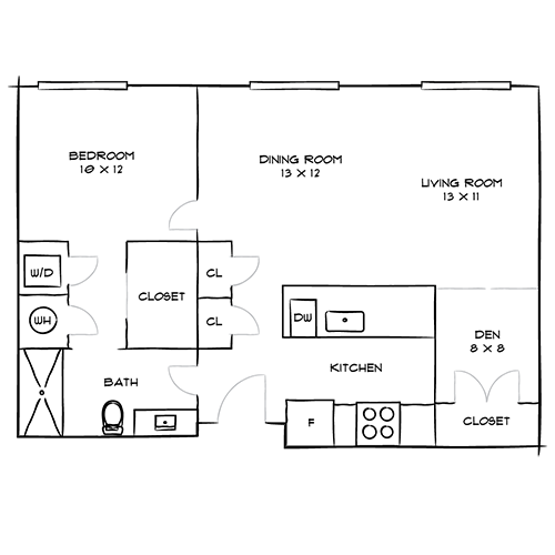 Frontier EB Jr. 1-Bed - Floorplan 1 Frontier ED Jr. 1-Bed