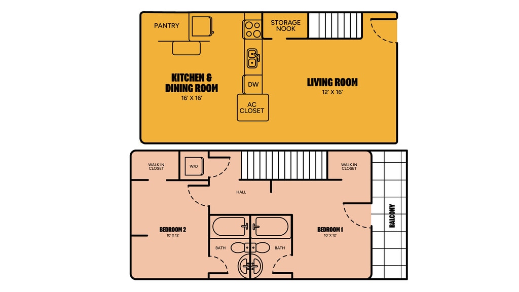Apartment Model: 2 Bed Townhome$8452 Bedroom, 2 Bath, 1024 sq ftAvailable Now![]()