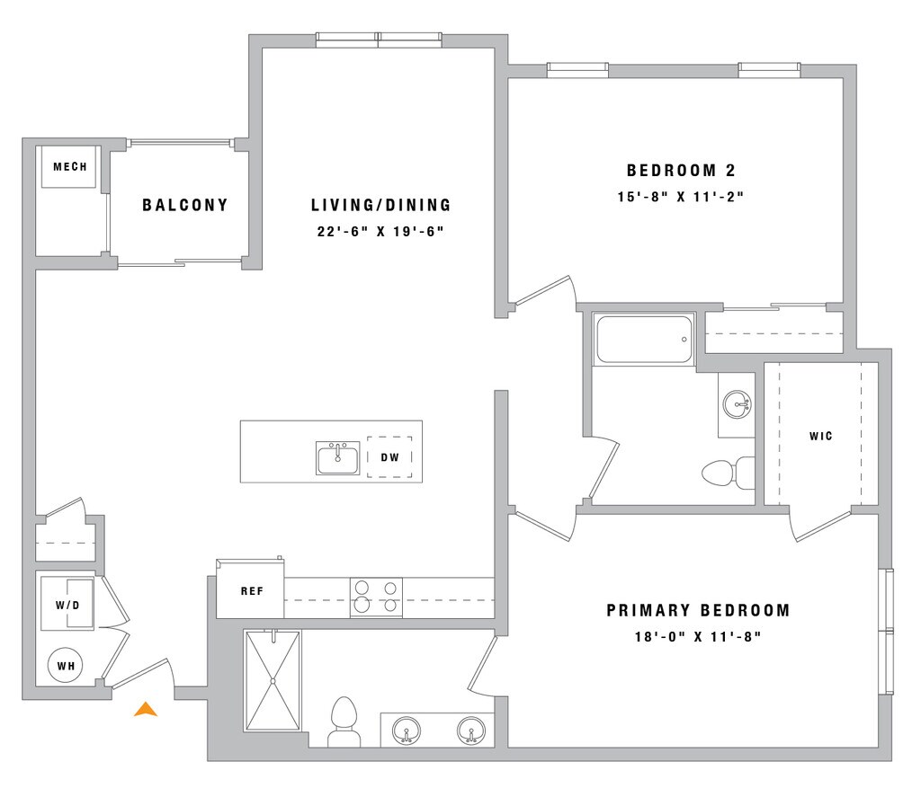 1B2 - Floorplan 1 Apartment Unit: 8106Apartment Model: 1B2From $2,0551 Bedroom, 1 Bath, 810 sq ftAvailable January 7, 20262 Bedrooms