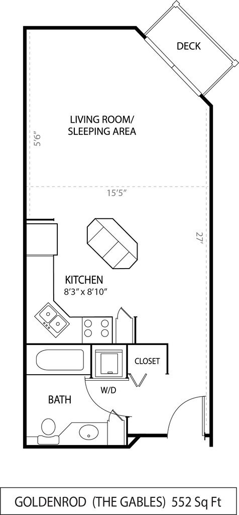 Apartment Model: GoldenrodCall For RatesStudio, 1 Bath, 522 sq ftUnavailableGoldenrod - Floorplan 1 1 Bedroom