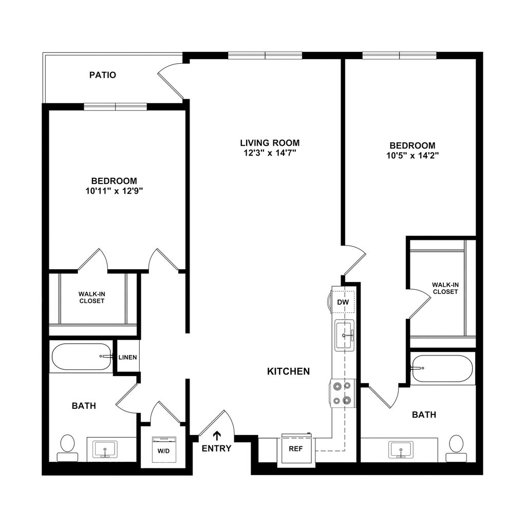 1 Bed, 1 Bath, 842 sq ftAvailable NowLargest 1 BedroomThis is the largest 1 Bedroom at this PropertyModel Gallery