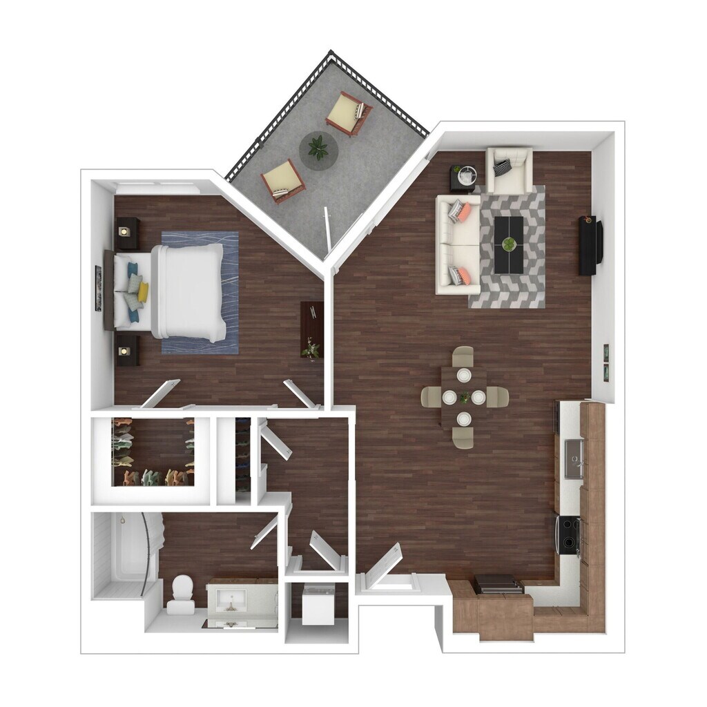 1 Bed, 1 Bath, 734 sq ftAvailable NowModel Gallery