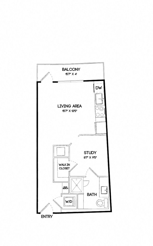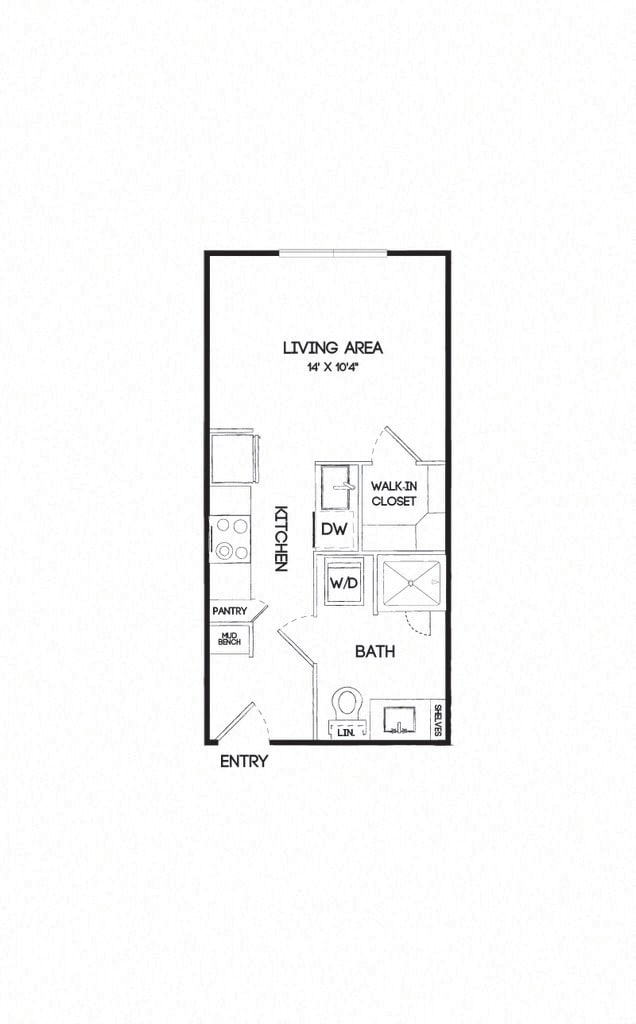 E4 - Floorplan 1 Apartment Unit: 333Apartment Model: E4$1,446Studio, 1 Bath, 599 sq ftAvailable February 27, 20261 Bedroom