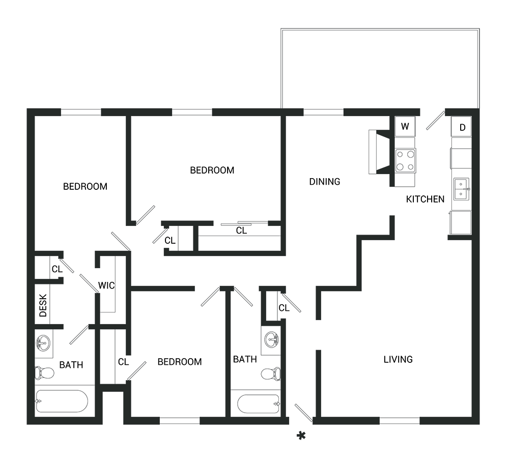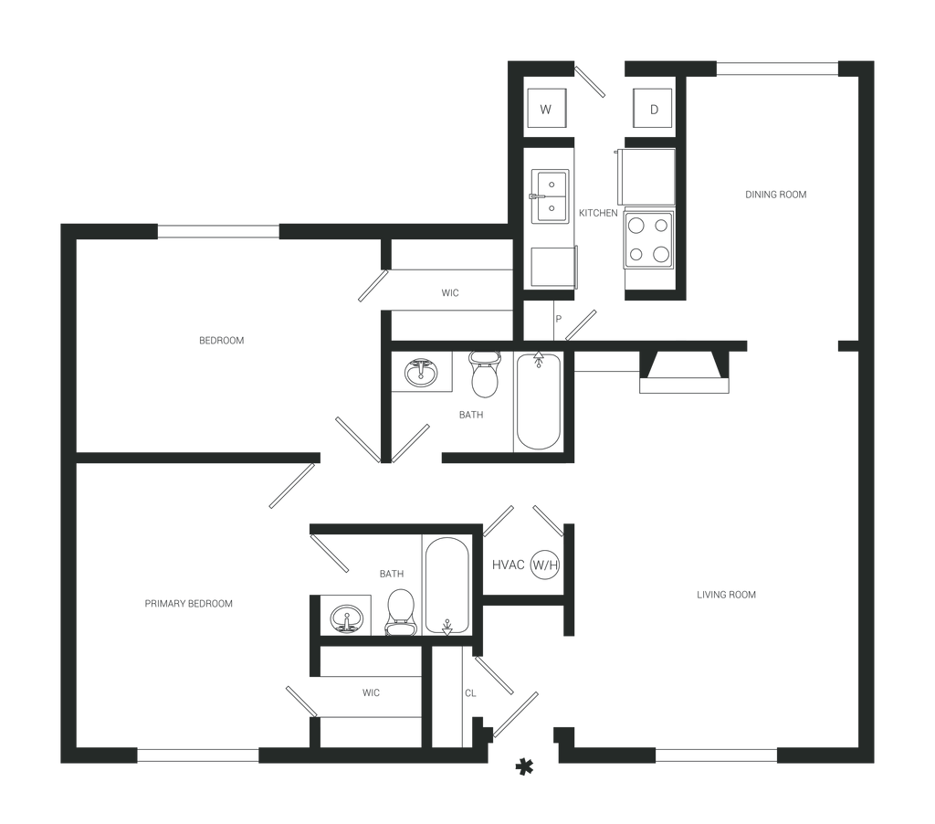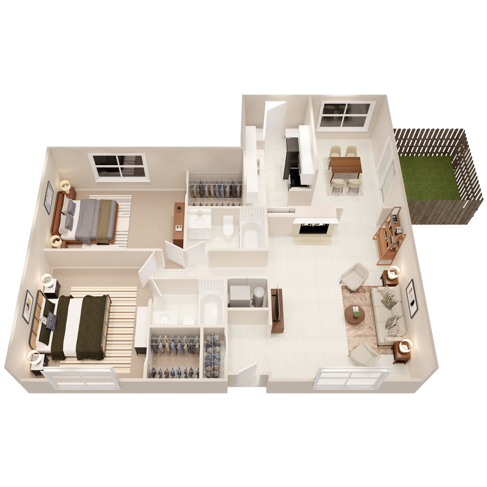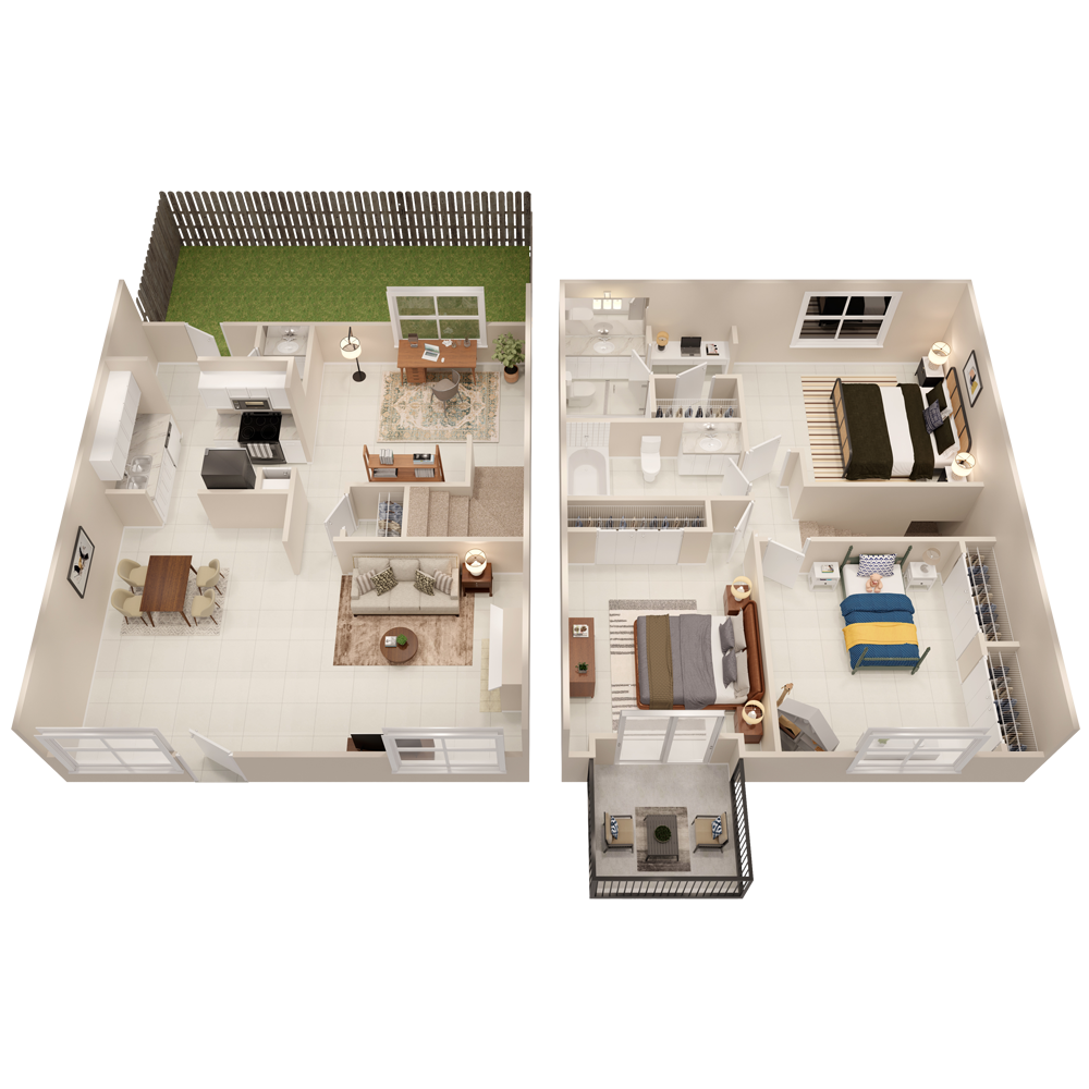 2 Beds, 2 Baths, 1388 sq ftAvailable NowLargest 2 BedroomThis is the largest 2 Bedroom at this PropertyModel Gallery