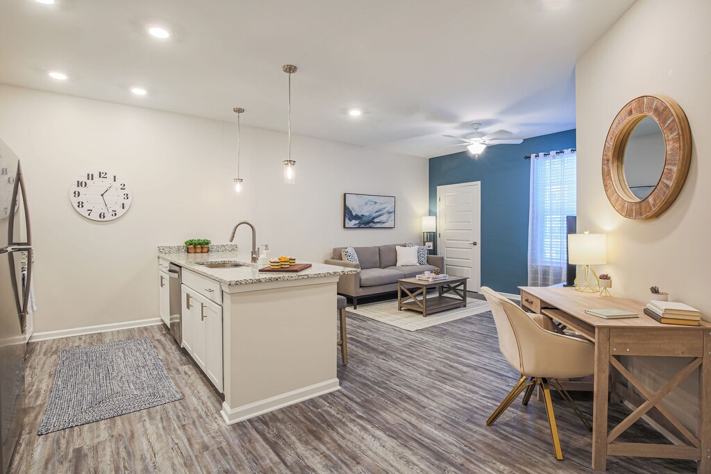 The Dali is a spacious 815 sq. ft. one-bedroom, one-bathroom apartment home designed for both comfort and style. This thoughtfully crafted layout features luxury vinyl plank flooring, plush carpeted bedrooms, and granite countertops that elevate the kitchen’s modern aesthetic. Enjoy energy-efficient stainless steel appliances, abundant natural light, and an open-concept living area perfect for relaxing or entertaining. The Dali seamlessly blends sophistication and functionality, making it the ideal retreat to call home.