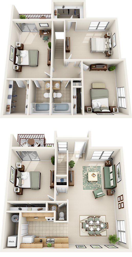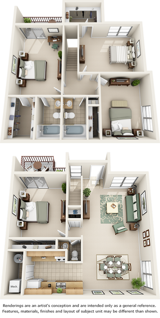 2 Beds, 2.5 Baths, 1113 sq ftModel Gallery