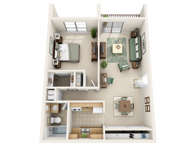 1 Bed, 1 Bath, 750 sq ftModel Gallery