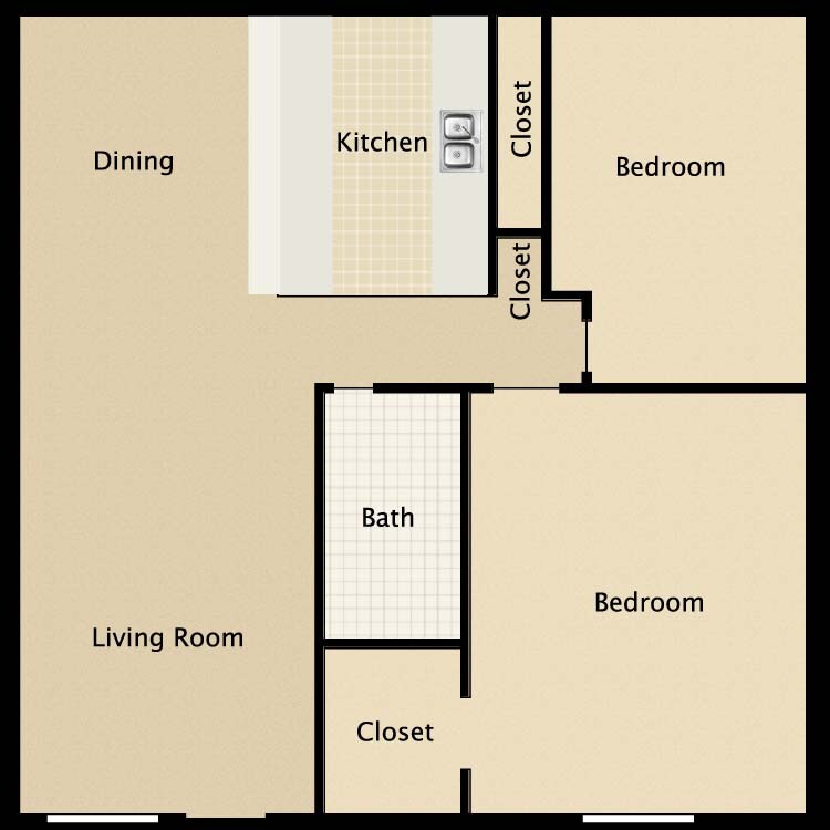 2 Beds, 1 Bath, 850 sq ftModel Gallery
