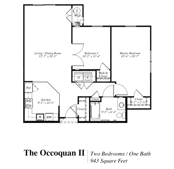 Apartment Model: OCCOQUAN II$1,6702 Bedroom, 1 Bath, 943 sq ftAvailable Now![]()