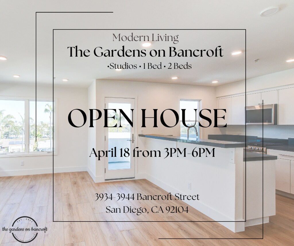 Tucked in the heart of North Park, our newly renovated 1930s bungalows and sleek modern apartments offer the perfect mix of style, privacy, and comfort with no shared walls in any unit! Enjoy thoughtfully designed studio, 1 & 2 bedrooms with upscale finishes, in-unit laundry, and private patios in select homes. The Gardens on Bancroft is only a few minutes away from 30th Street’s top restaurants, coffee shops, and nightlife, you’re not just near the action, you’re part of it. Look & Lease Special: Apply for a 1-bedroom apartment or bungalow within 24 hours of touring and receive up to 4 weeks FREE! Don’t miss your chance to live in one of San Diego’s most vibrant neighborhoods, feel free to contact our Property Manager, Kenneth at or (858) 264- 6552 to schedule a tour today! CA DRE# 01523691