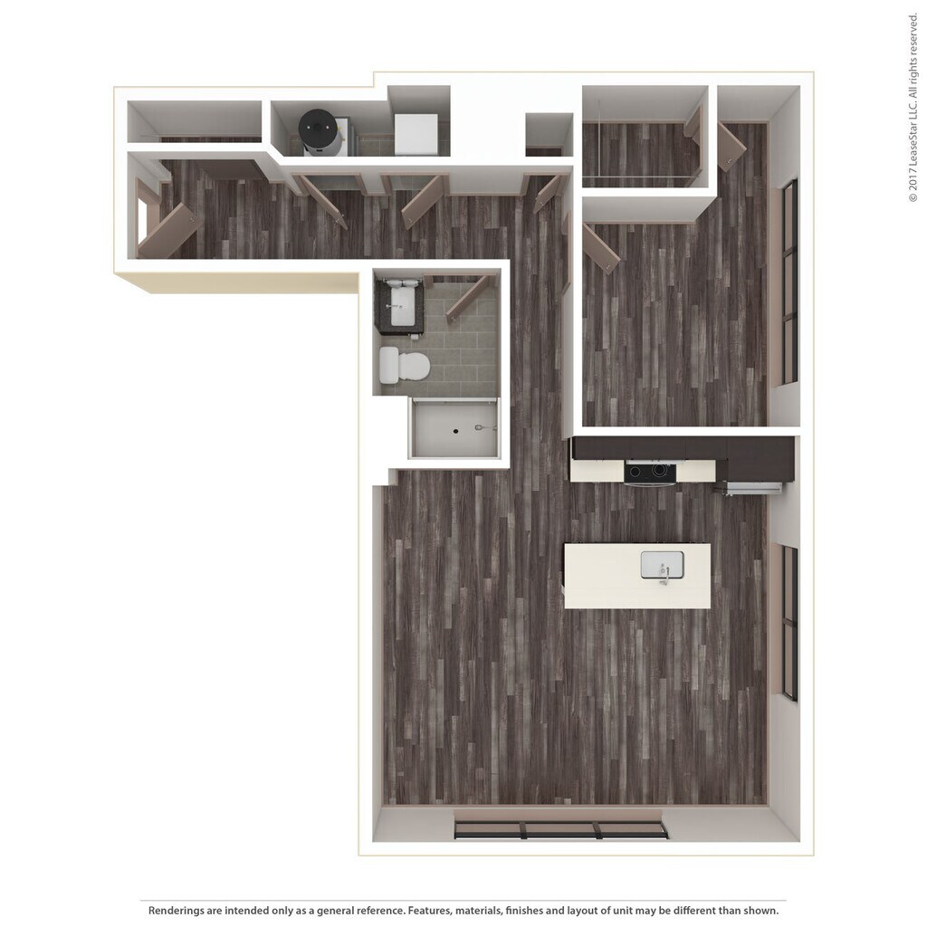 One Bedroom, One Bath: C - Floorplan 4 Apartment Unit: 903Apartment Model: One Bedroom, One Bath: C$1,3251 Bedroom, 1 Bath, 580 sq ftAvailable NowOne Bedroom, One Bath: E