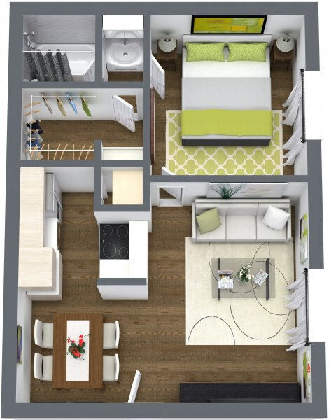 Apartment Model: A2 Classic$8511 Bedroom, 1 Bath, 553 sq ft![]()