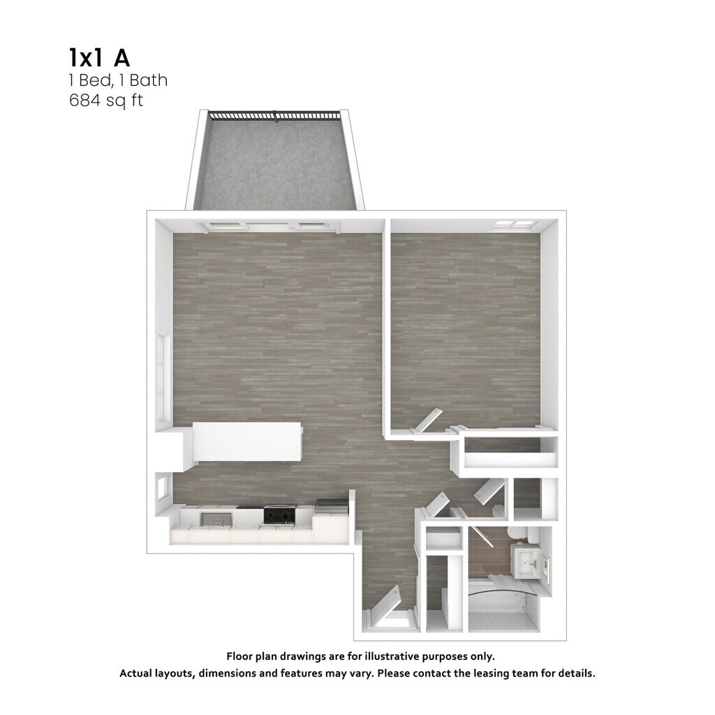 Studio, 1 Bath, 684-691 sq ftAvailable NowLargest StudioThis is the largest Studio at this PropertyModel Gallery