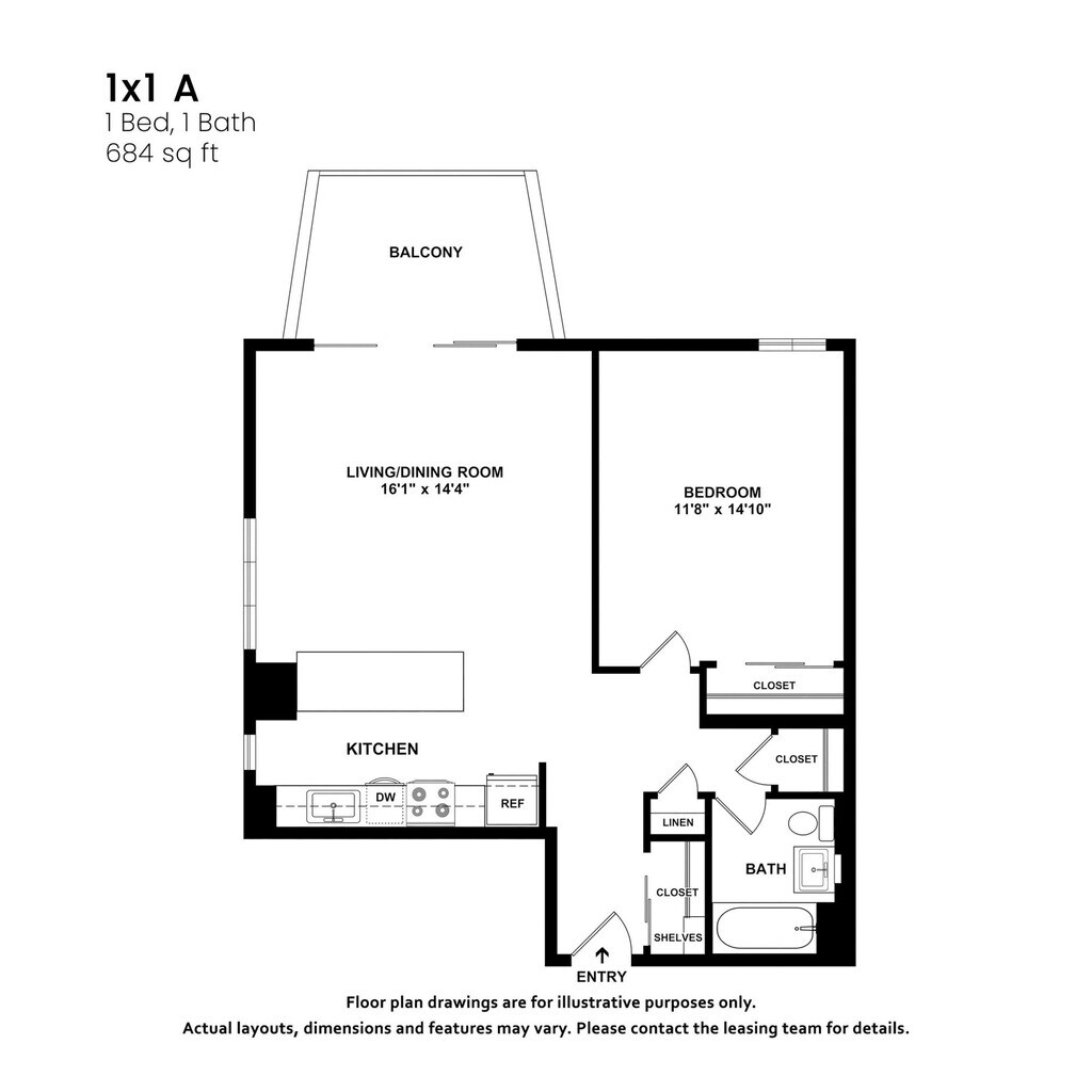 1 Bed, 1 Bath, 684-730 sq ftAvailable Dec 8Model Gallery