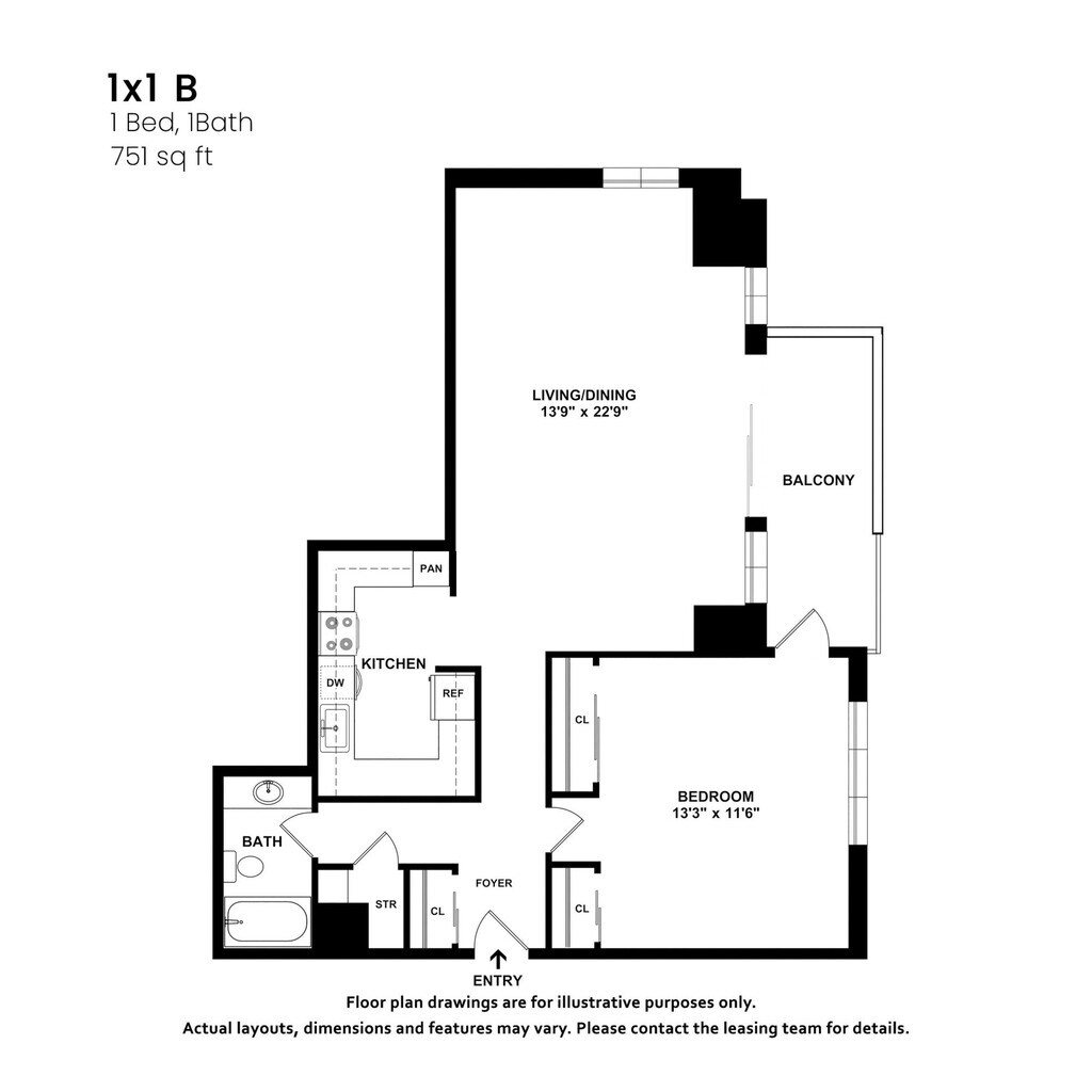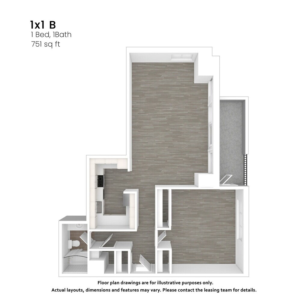1 Bed, 1 Bath, 729-759 sq ftAvailable Nov 26Largest 1 BedroomThis is the largest 1 Bedroom at this PropertyModel Gallery