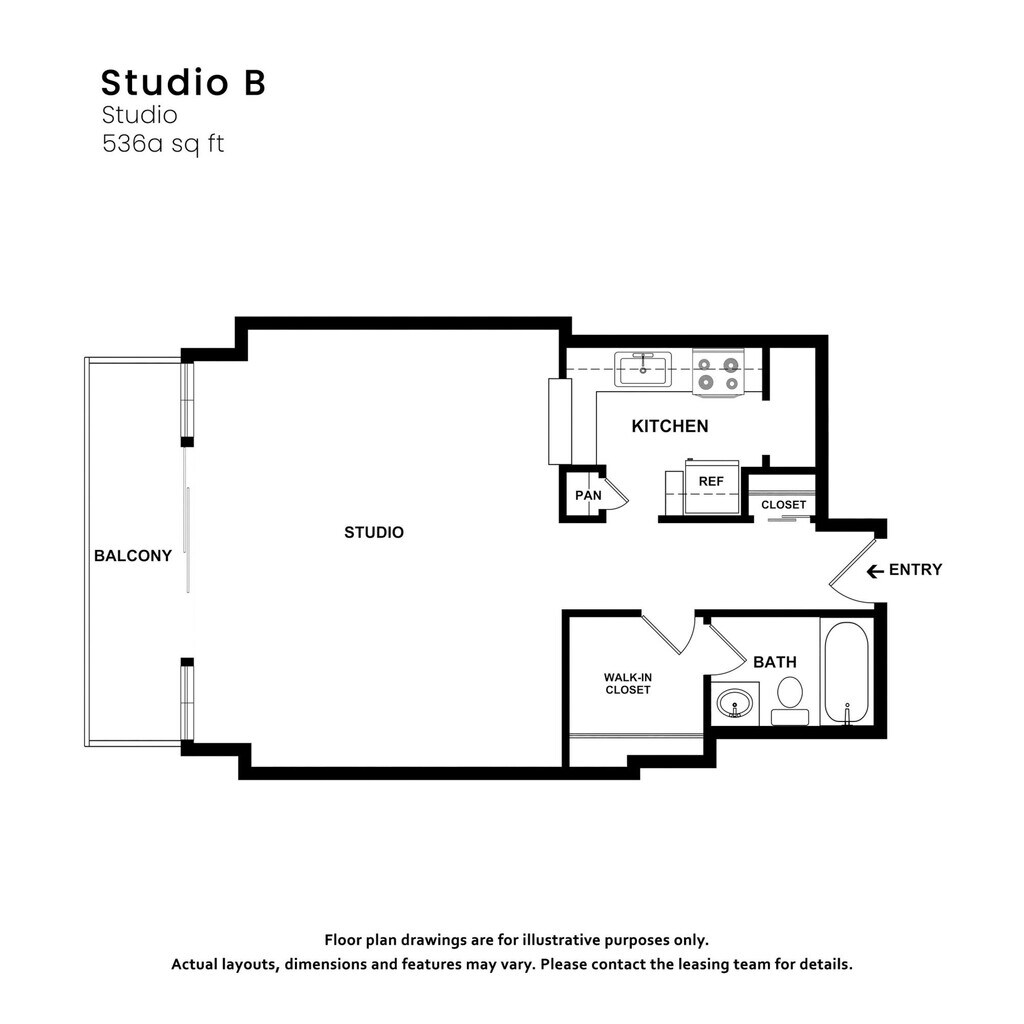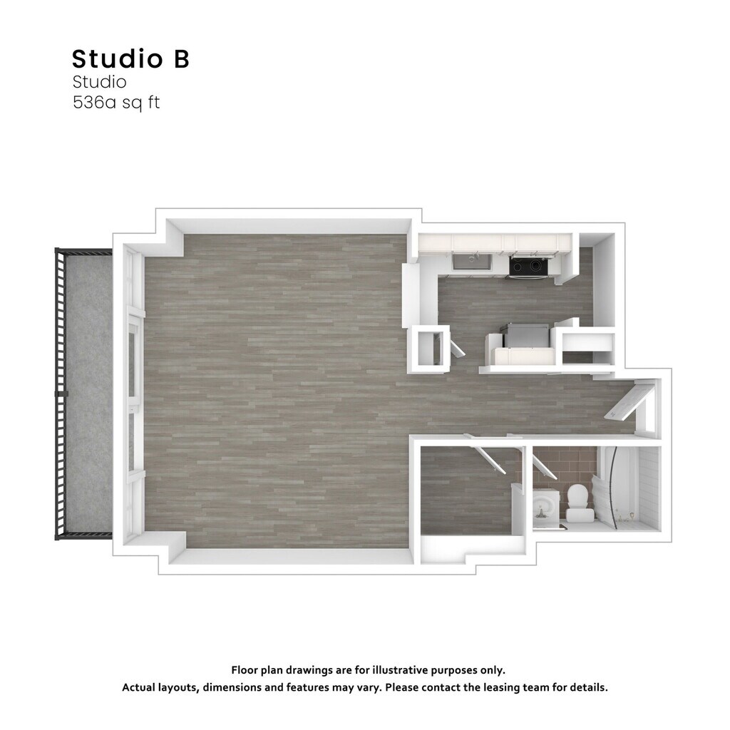 Studio, 1 Bath, 536 sq ftModel Gallery