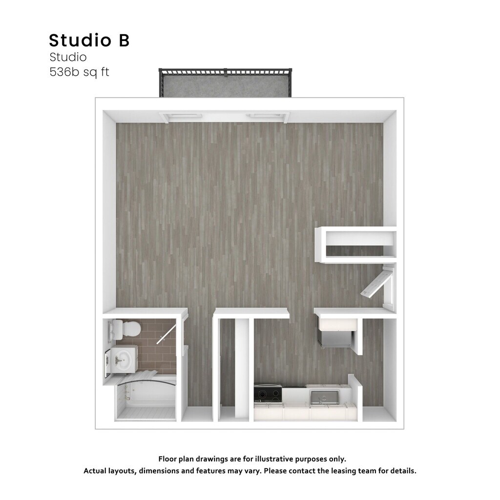 Studio, 1 Bath, 494-512 sq ftAvailable NowCheapest StudioThis is the cheapest Studio at this PropertyModel Gallery