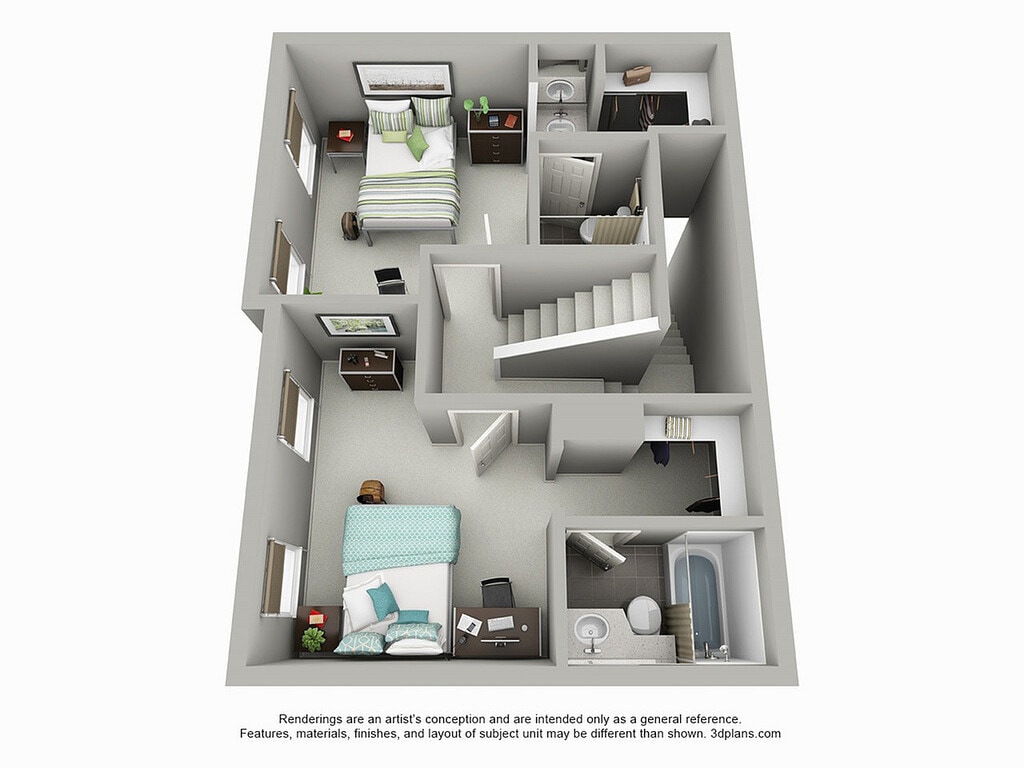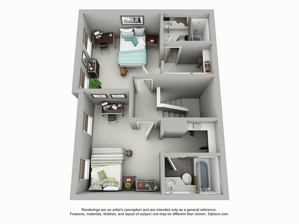 Apartment Model: 4B 4.5B4 Bedroom, 4.5 Bath, 1636 sq ftAvailable August 14, 2026![]()