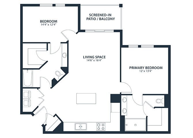 1 Bed, 1 Bath, 856 sq ftAvailable NowLargest 1 BedroomThis is the largest 1 Bedroom at this PropertyModel Gallery