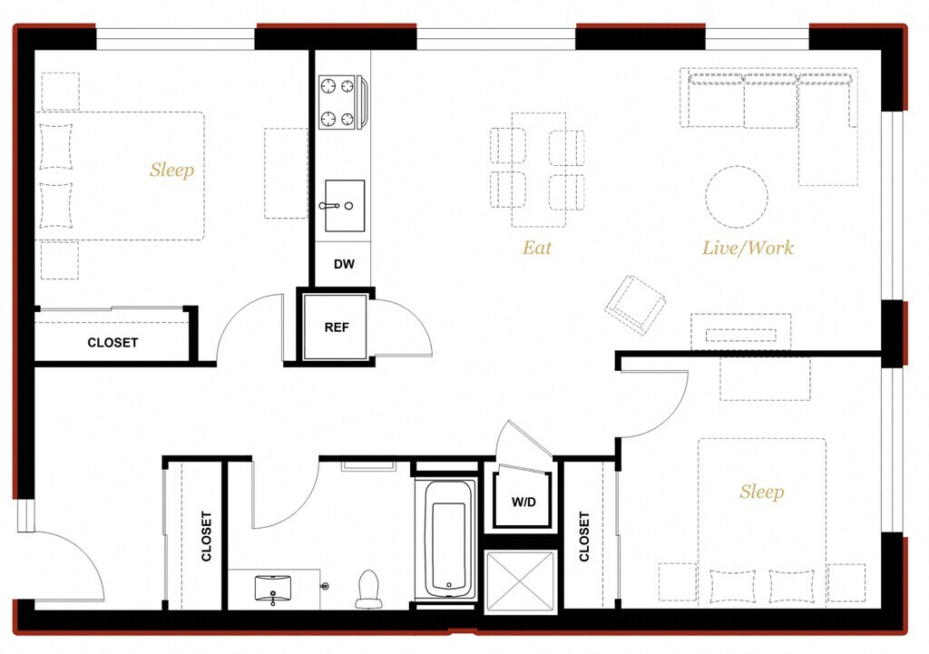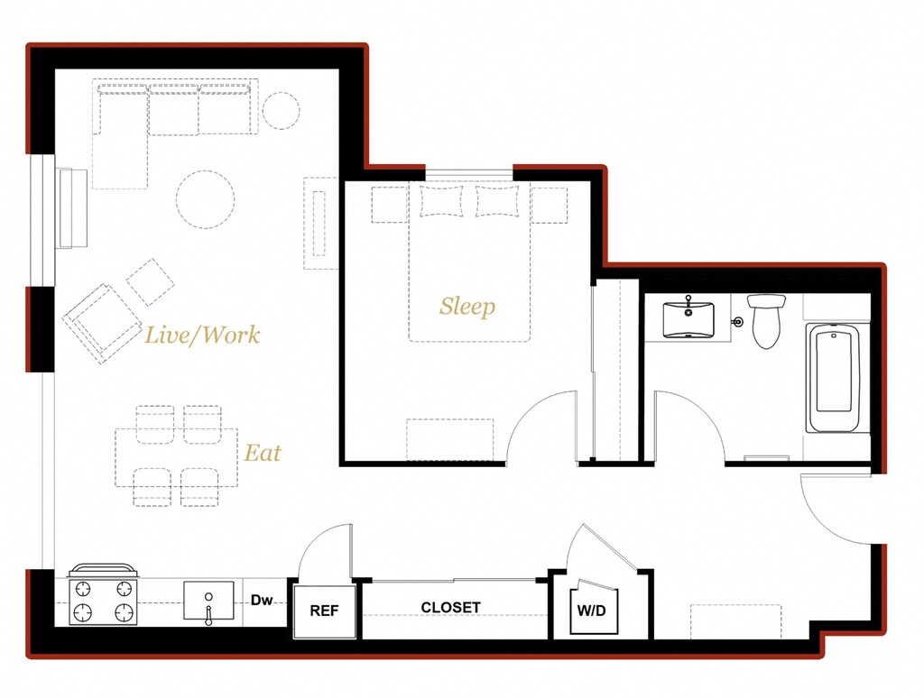 Studio C - Floorplan 1 1 Bedroom