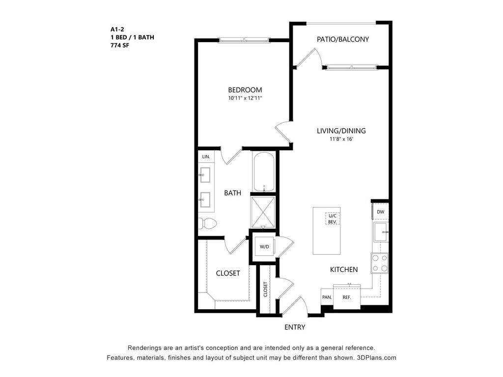 1 Bed, 1 Bath, 774 sq ftAvailable NowModel Gallery
