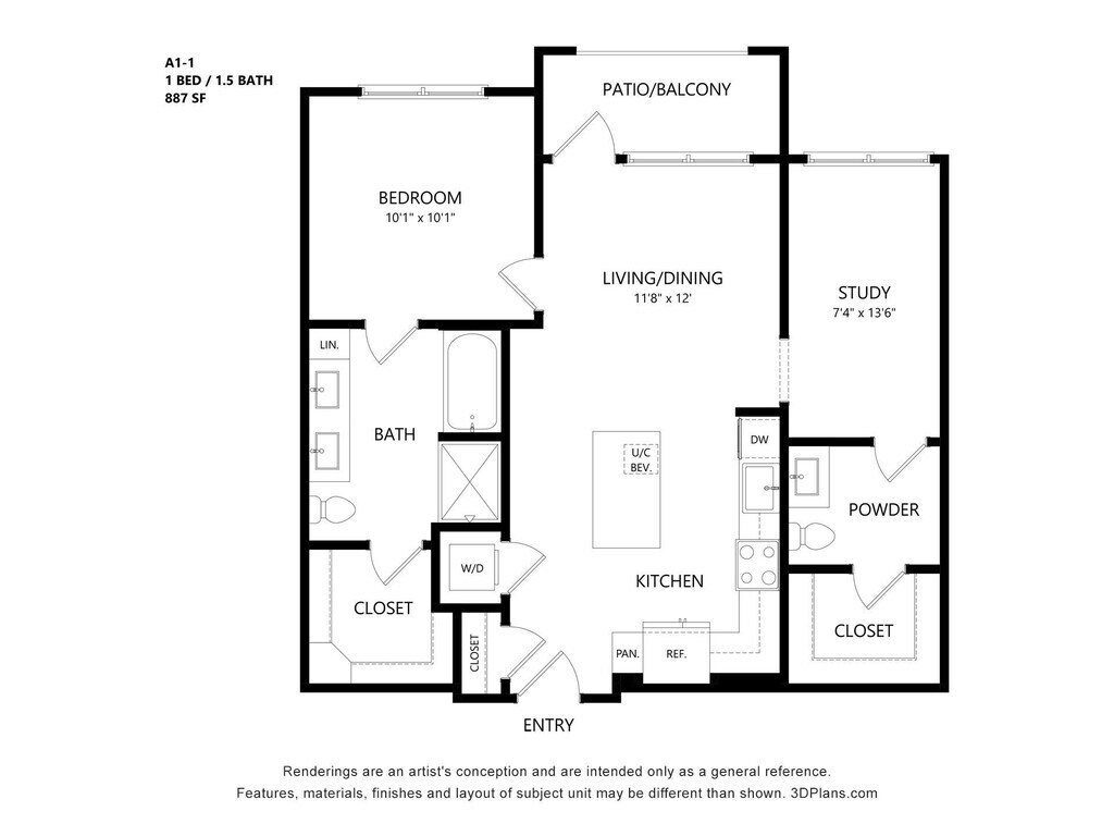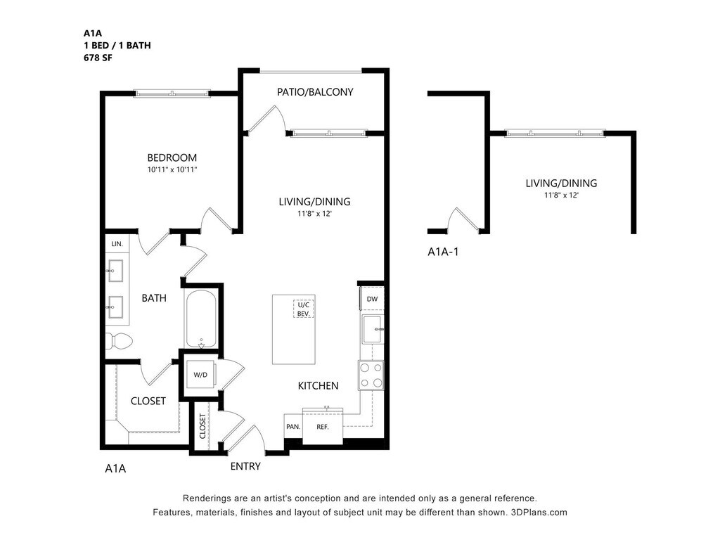 Apartment Model: A1sFrom $1,9241 Bedroom, 1 Bath, 678 sq ftAvailable Now![]()