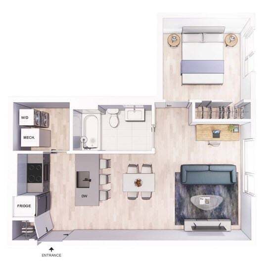 1 Bed, 1 Bath, 590 sq ftModel Gallery