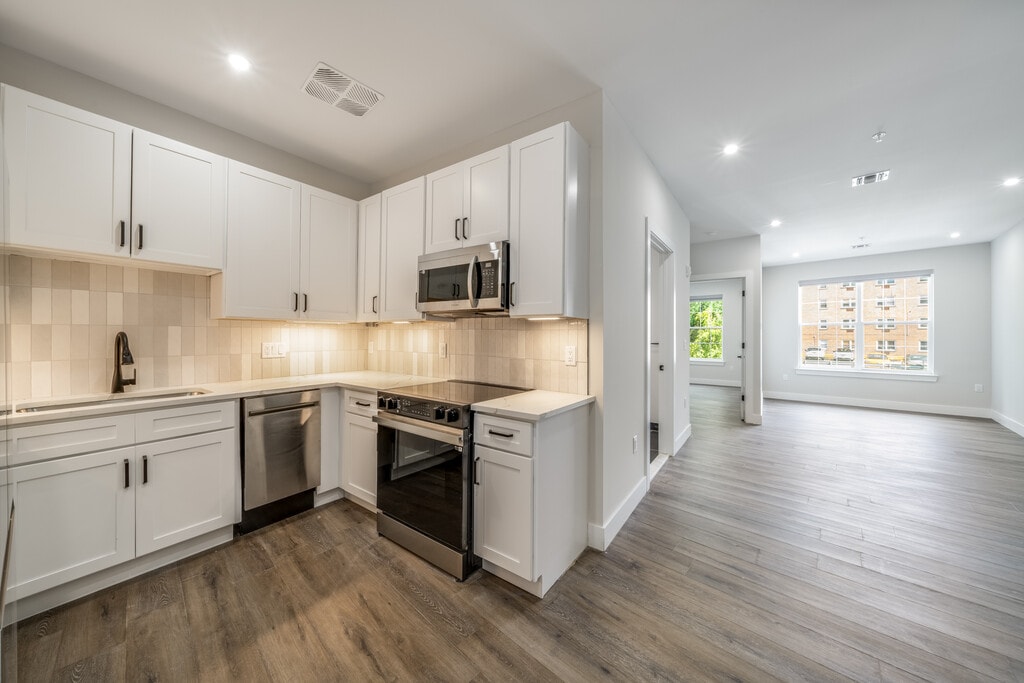 Our newly constructed building offers a variety of spacious 1 and 2-bedroom apartments, some featuring dens perfect for a home office or extra living space. Select units also boast private terraces & balconies, ideal for enjoying your morning coffee or evenings with friends. Each apartment is designed with meticulous attention to detail, featuring high-end finishes, open-concept layouts, and abundant natural light. Only .45 miles from Maplewood's train station that provides direct access into Penn Station in under 40 minutes. Walking distance to Maplewood Village, well known for its great dining, shops, and quant feel. Directly across the street from a portion of the brand-new Greenway path that connects you directly to the Maplewood Train Station & Maplewood Village.