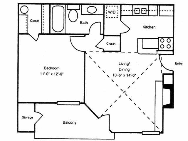 One Bed One Bath - A2 - Floorplan 1 ![]()