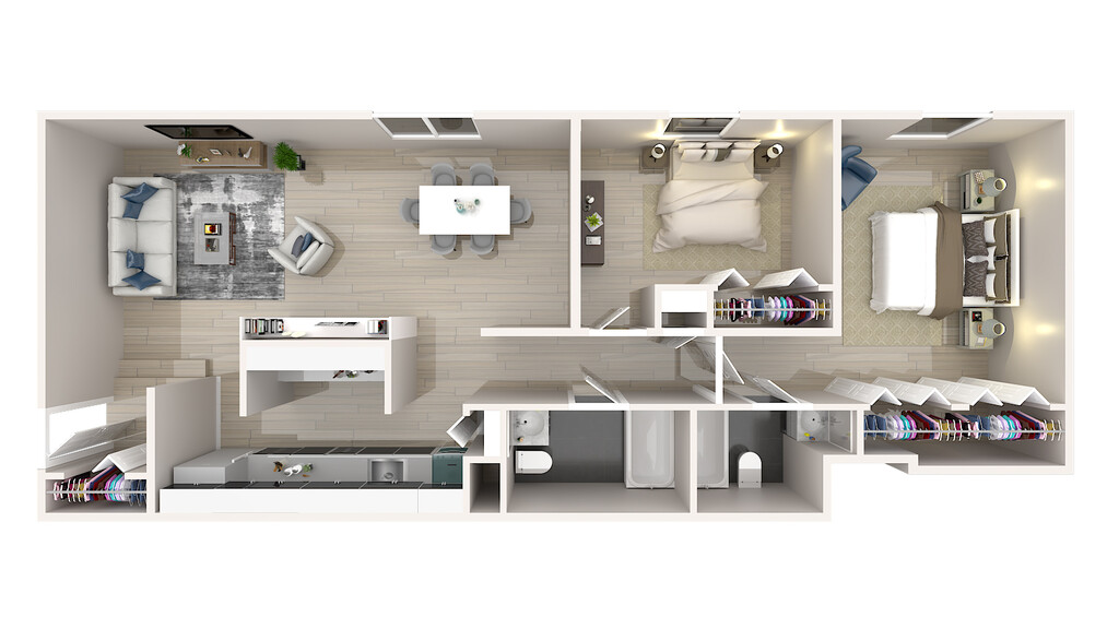 2 Beds, 2 Baths, 1107 sq ftAvailable NowModel Gallery