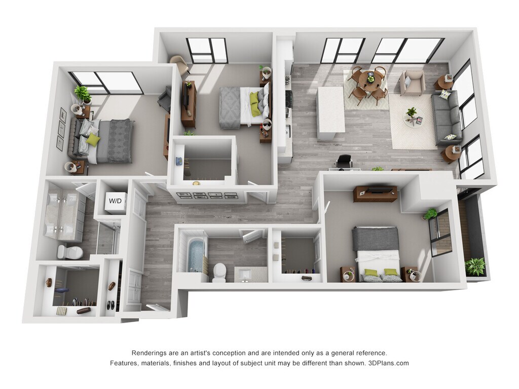 The Glenn offers Studio to 3 Bedroom apartments starting from $1,457 and having 555–1,574 sq ft. Here is the current pricing and availability:
