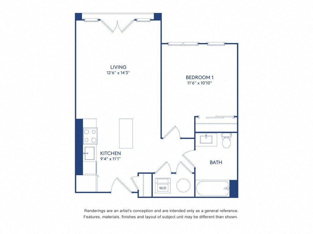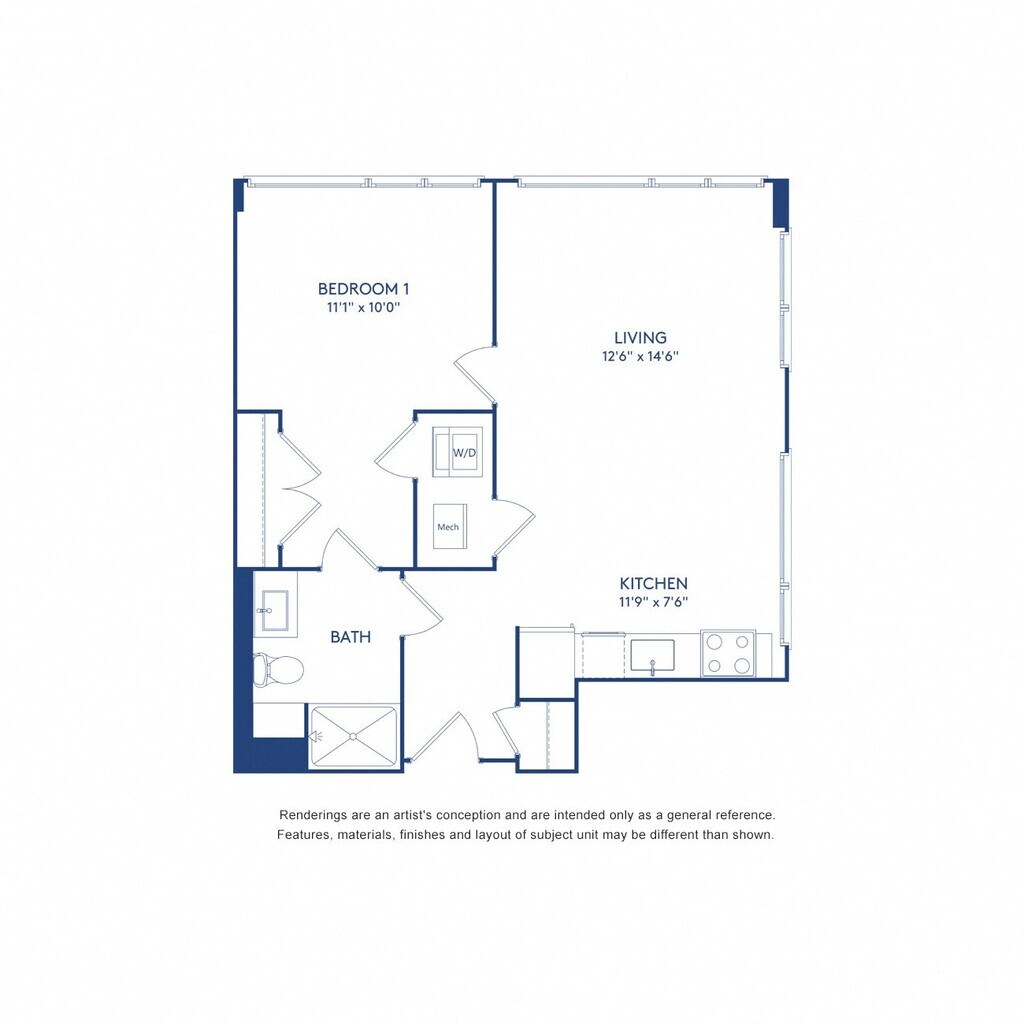 Studio (412 SF) - Floorplan 1 1 Bedroom