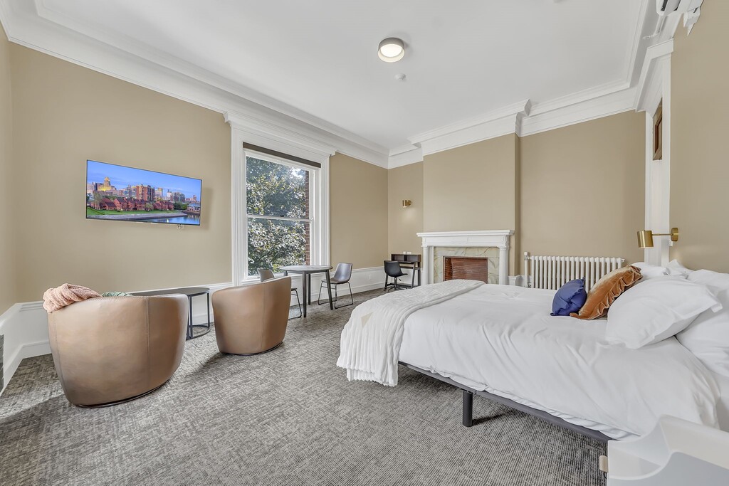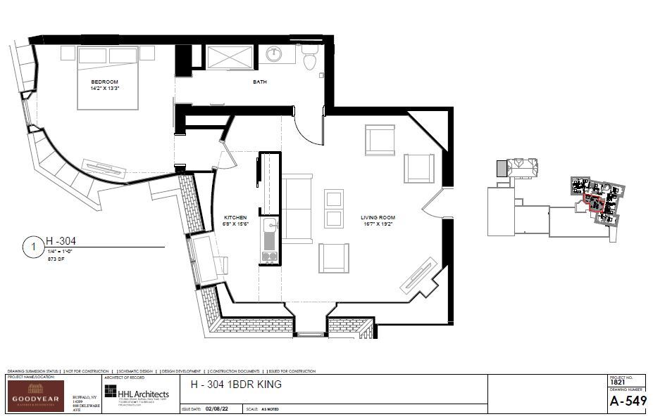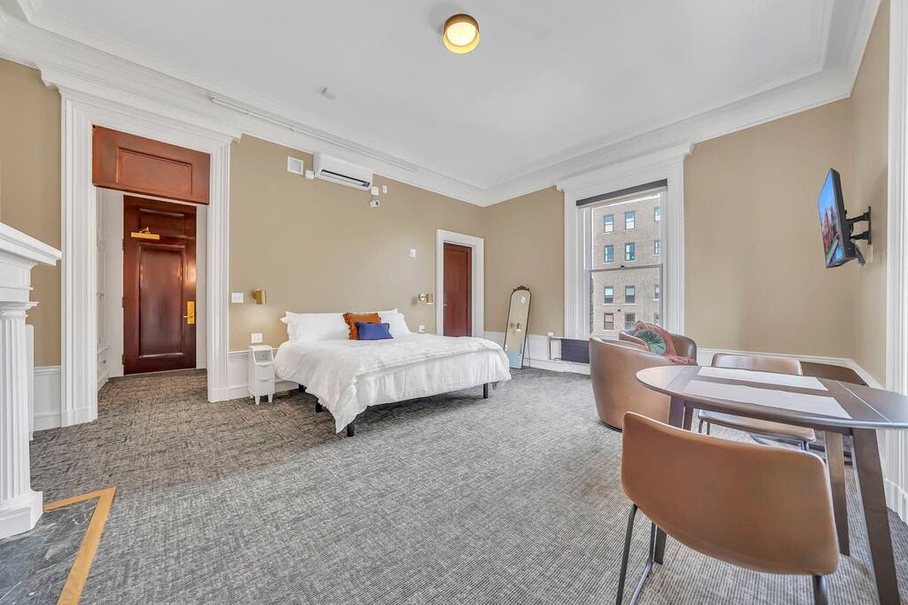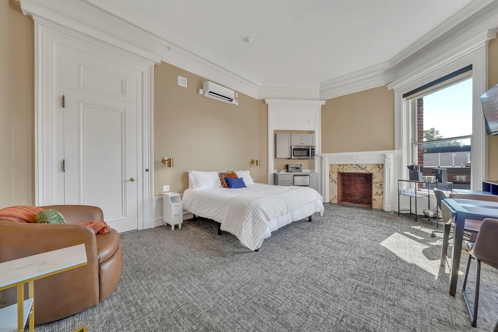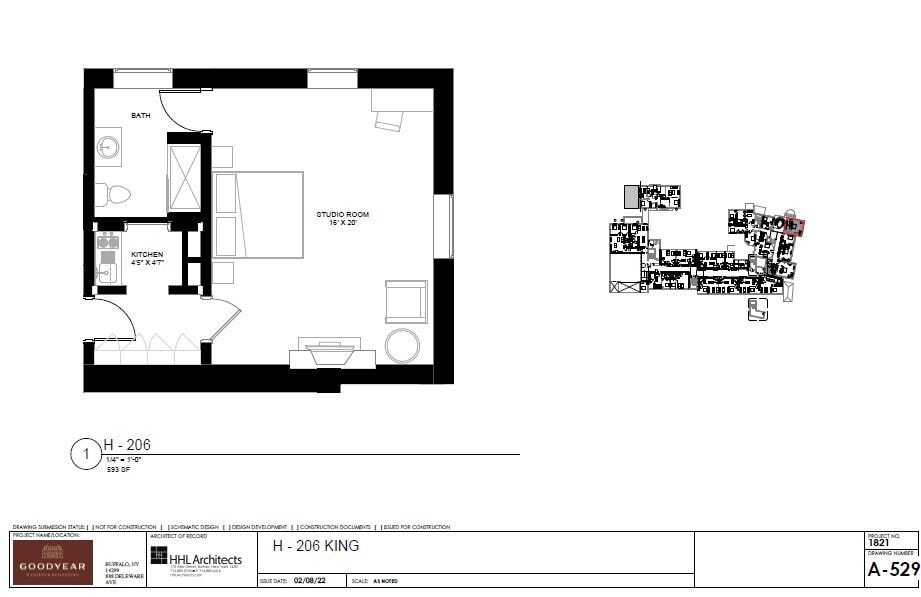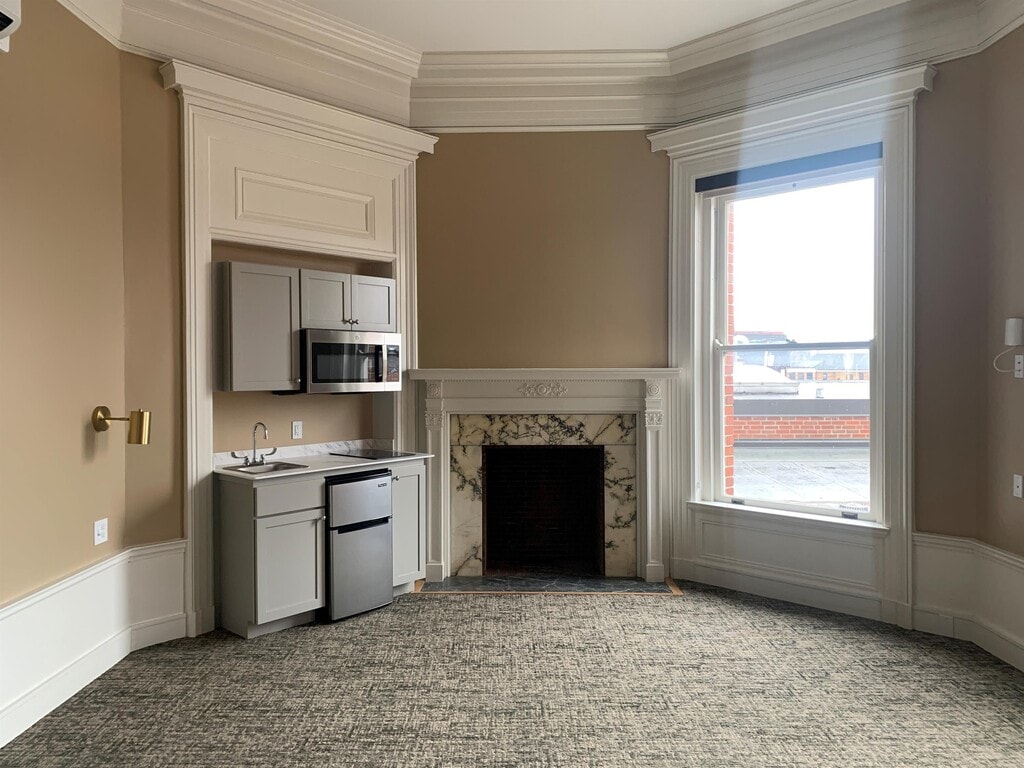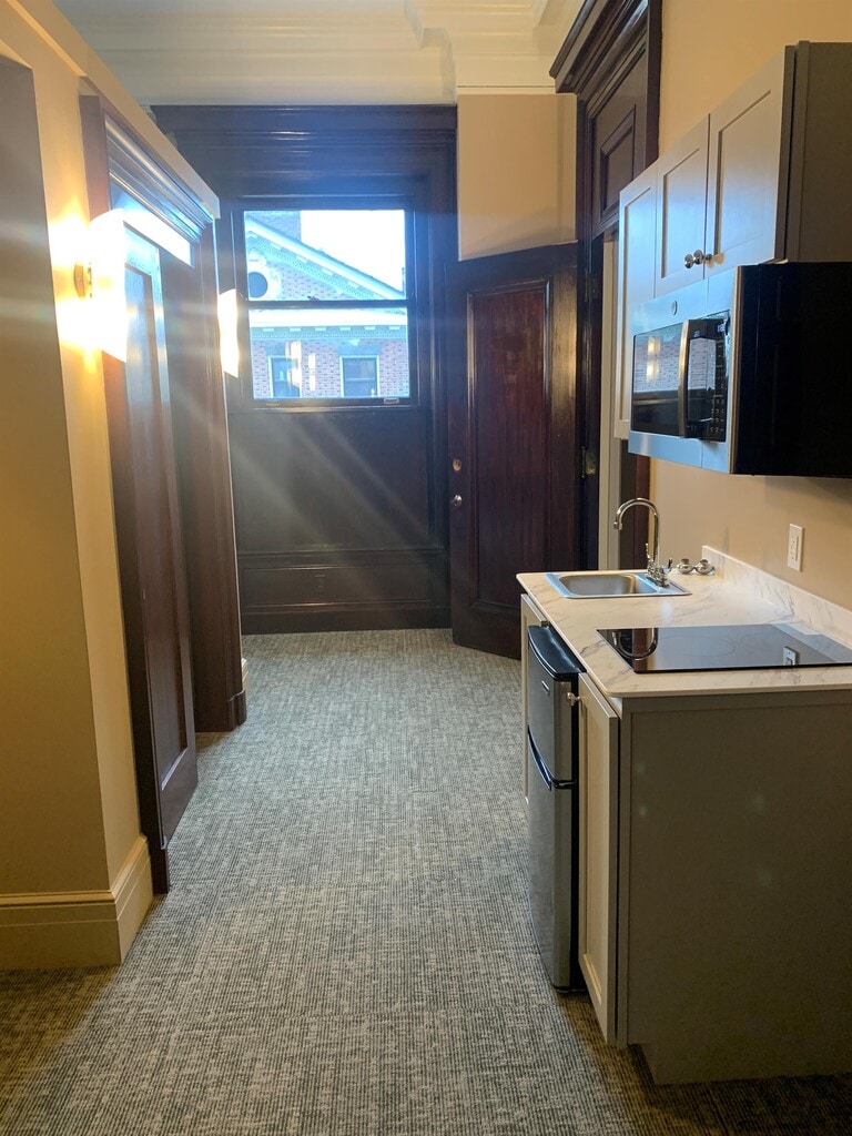 13 Month Rent Special, One Month Free Beautiful studio apartment in the desired "Millionaire's Row" of Buffalo, NY! With 11ft ceilings, bright massive windows, LVT & tile floors, brand new stainless steel appliances with dishwasher. You'll have in-unit laundry, internet & cable, and parking all included in rent! Built in 1903, The Goodyear Mansion & Residences was part of the famed “Millionaire's Row.” A stretch of Delaware Avenue between North Street and Bryant Avenue lined with extravagant mansions and lush gardens for Buffalo's most wealthy. The two blocks were the most desirable residential addresses in the city. Today, the area's allure continues with The Goodyear Mansion & Residences. The building's facade is brick trimmed with ornate wood paneling and dazzling stained glass windows in the interior. In these sleek modern apartments, you'll live in timeless style in one of Buffalo's most exciting neighborhoods. For leasing information, call or email or .